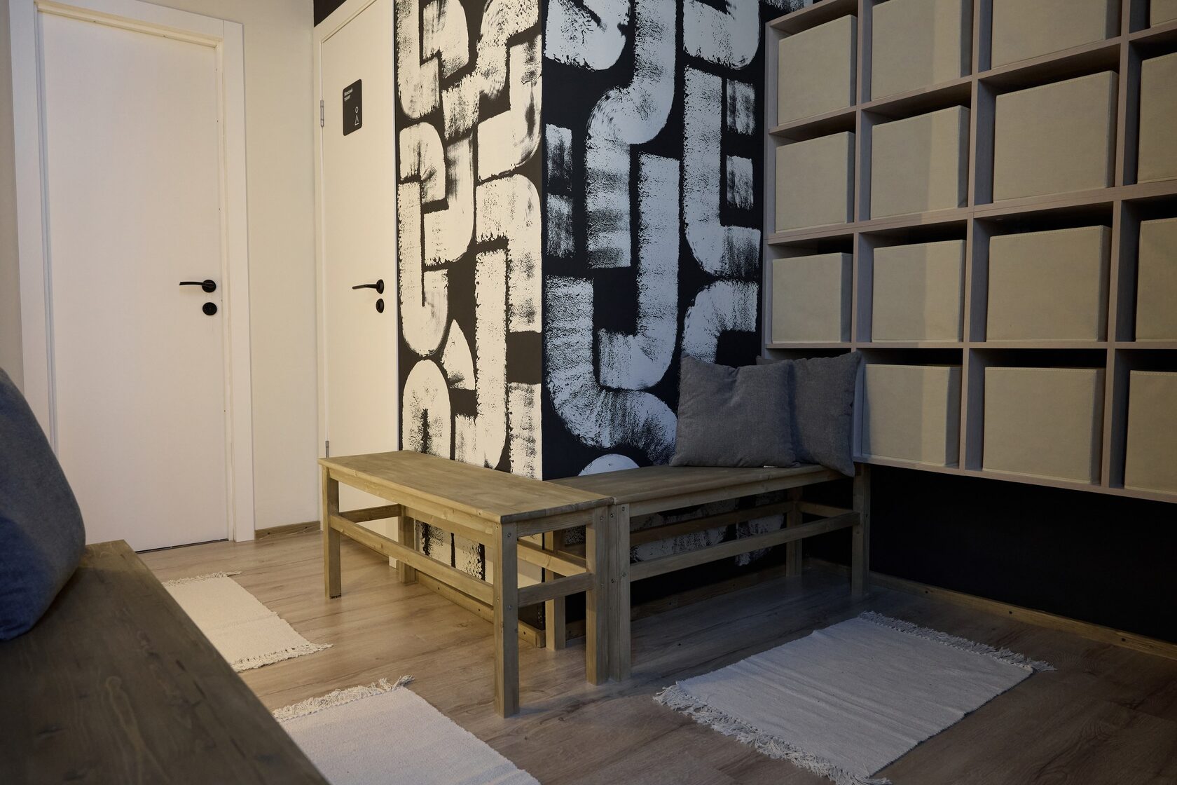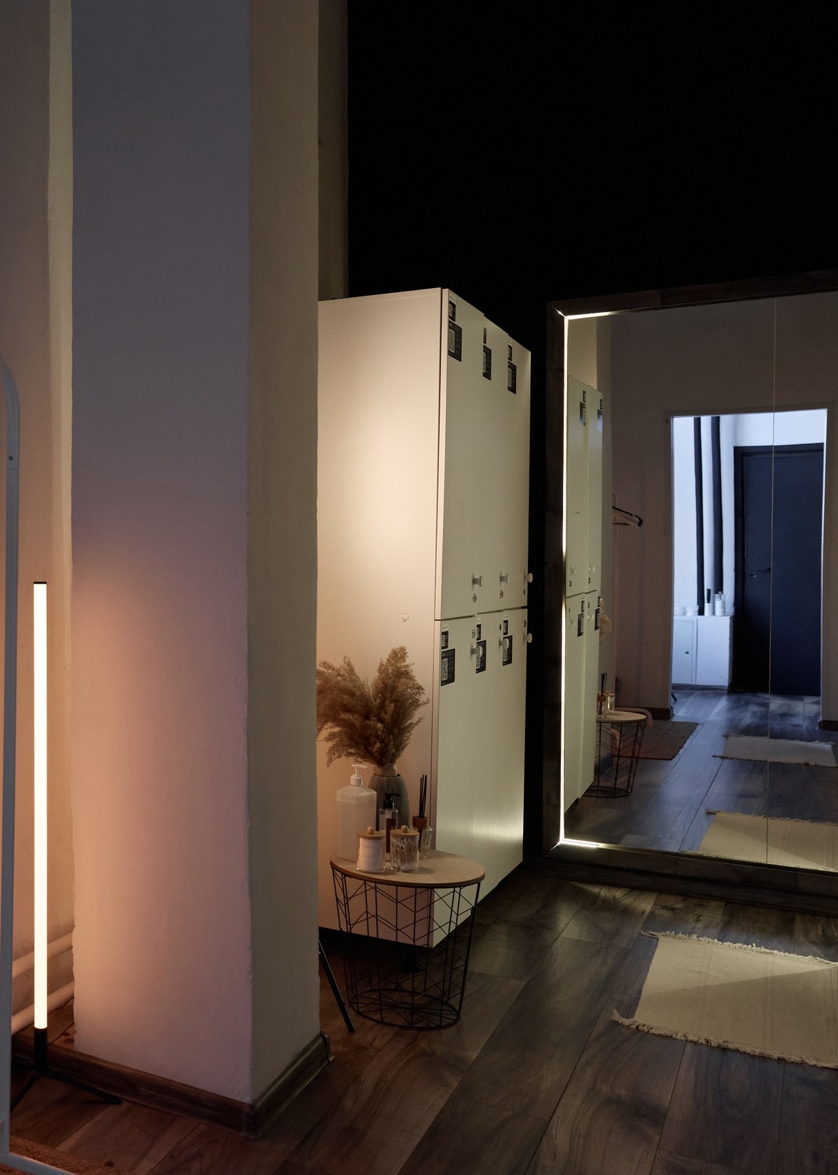 В каждом из залов есть комфортабельные раздевалки со всем необходимым: сухие и влажные салфетки, бесплатные резиночки для волос, кремы для рук, принадлежности личной гигиены.